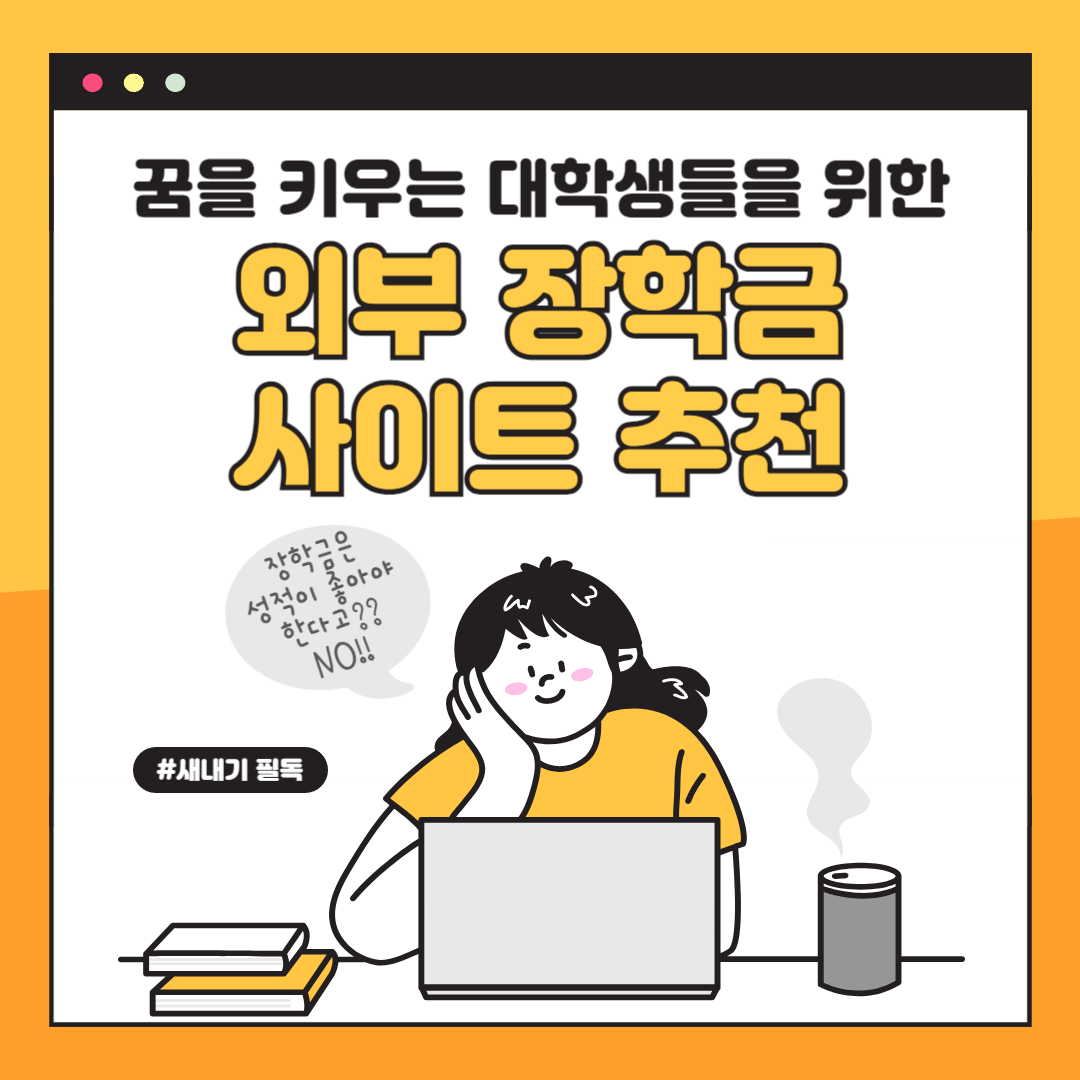 대학생 여러분들을 위한 외부 장학금을 찾는 데 도움이 될 만한 사이트를 소개해 드리려 합니다. 재정적인 부담을 덜고 꿈을 이루기 위한 지원을 받을 수 있는 장학금은 매우 중요합니다. 아래의 사이트들을 통해 여러분의 학비 부담을 줄일 수 있을 것입니다.