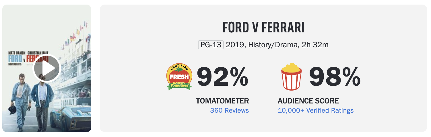 넷플릭스 영화 추천 <포드 V 페라리 > 정보