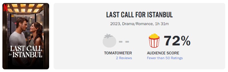 영화 <이스탄불행 비행기가 곧 출발합니다> 평점은 로튼토마토 팝콘 77%에 IMDb의 평점은 5.4 / 10.0이다. 이 영화의 재미는 스토리 자체가 아니라 스토리의 구성이다. 영화를 보고 나면 뻔한 스토리일 수 있지만 중간의 과정은 신선한 자극과 흥미를 유발한다. 스토리의 흐름이 처음의 생각과는 다르게 흘러가지만 그 다르게 흘러가는 스토리도 충분히 흥미롭다. 또 다른 나라 튀르키예의 결혼생활은 어떠한 지에 대해서도 간접적으로 알 수 있다. 사람 사는 것은 어디든 비슷하다는 생각이 들 것 같긴 하다. 이러한 장르를 좋아하는 이들에게는 킬링타임으로 볼 만한 영화이다.