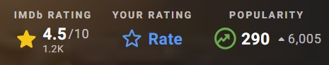2024년 4월 3일 현재 IMDB점수는 10점 만점에 4.5점, 로튼토마토 지수 40%, 관객지수는 17%를 나타내고 있다.
