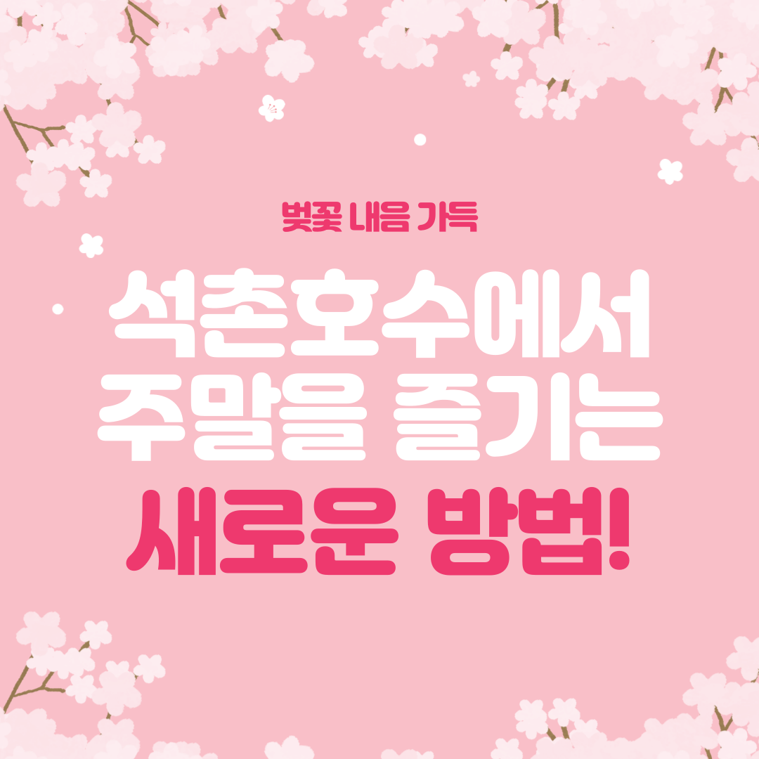 힐링과 로맨스, 문화와 레저를 모두 즐길 수 있는 석촌호수 주변의 매력에 빠져보세요. 아름다운 벚꽃과 함께하는 이 특별한 주말은 당신에게 새로운 기억과 행복을 안겨줄 것입니다. 함께하는 소중한 사람과 함께라면, 봄날의 특별한 순간이 될 것입니다.