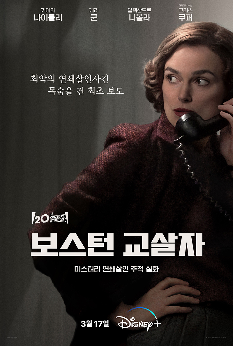 미국판 살인의 추억이라고 불리며 13명의 피해자를 남긴 잔혹한 연쇄살인 추적극이 디즈니 플러스 오리지널 영화로 공개되었다. 3월 17일 디즈니 플러스에서 공개된 보스턴 교살자는 미 역사상 가장 악명 높았던 범죄를 일으킨 <보스턴 교살자>를 최초 보도한 두 저널리스트 '로레타 매클로플린'과 '진 콜'이 더 이상의 희생자를 막기 위해 사건을 집요하게 쫓는 범죄 실화 추적극이다.
