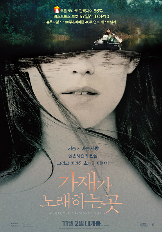 영화 <가재가 노래하는 곳>은 같은 제목의 델리아 오언스의 소설을 원작으로 한다. 이 소설은 미국에서 2018년에 발간되어 무려 181주간 뉴욕타임즈 베스트 셀러였다. 영화 <가재가 노래하는 곳>은 전 애인의 죽음으로 법정에 서게 된 주인공을 중심으로 습지에 혼자 남겨진 소녀의 사랑과 살인사건의 진실을 다루고 있다. 영화는 끝까지 꽉 막힌 결말이지만 속에 언뜻 비친 계급과 인종, 윤리와 삶에 대한 근본적인 질문이 많아 결국 원작 소설 또한 찾게 될 것으로 추천하는 영화이다.