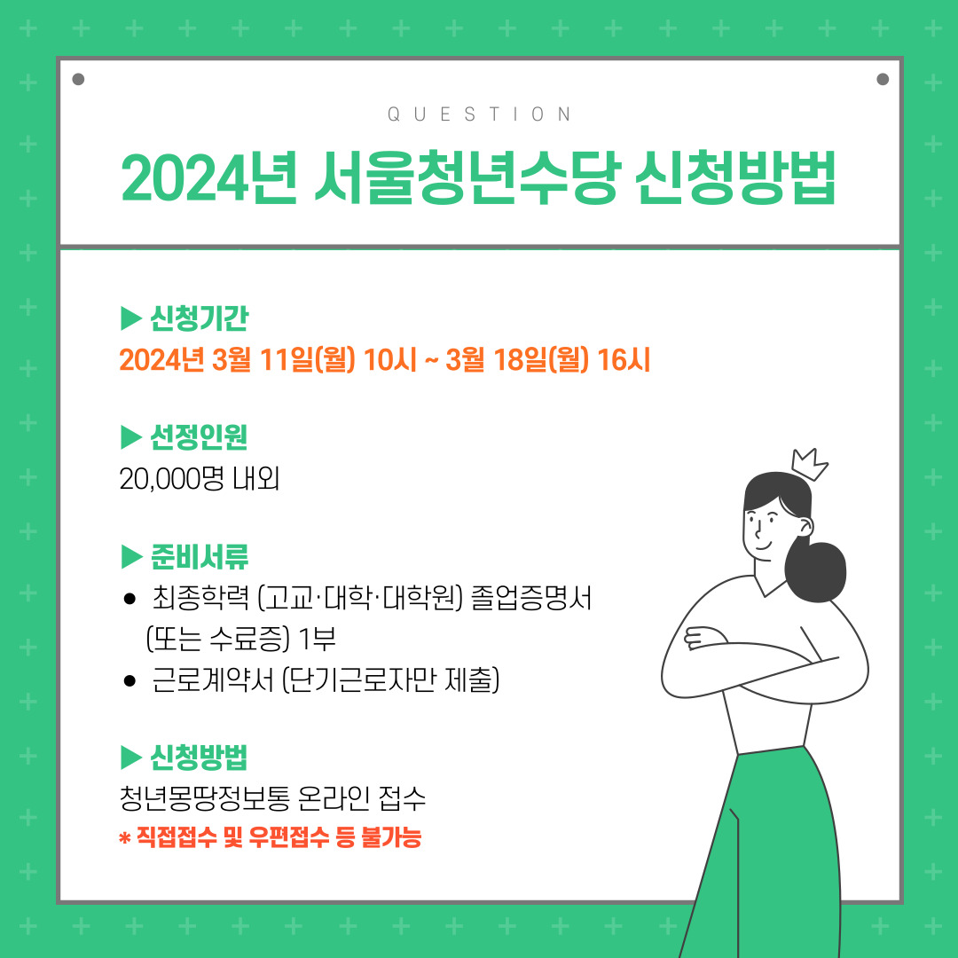 월 50만 원씩 최대 6개월간 지원금을 지급하는 '2024년 서울 청년수당'이 3월 11일 오전 10시부터 18일 오후 4시까지 참여자를 모집한다. 올해는 청년 스스로 성장할 수 있는 정책으로 업그레이드되었다. 청년수당으로 취업과 자립에 성공한 청년을 멘토로 위촉하고 교육·상담 등 성공적인 취업을 위해 자립지원 종합패키지를 제공한다.