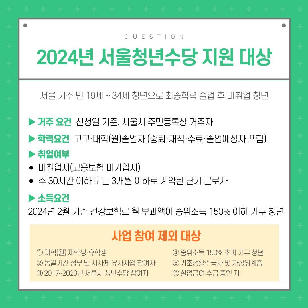 ① 대상 : 서울 거주 만 19 ~ 34세 청년으로 최종학력 졸업 후 미취업 청년
