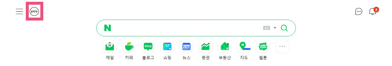 1. 네이버 좌측 상단의 페이 버튼 클릭