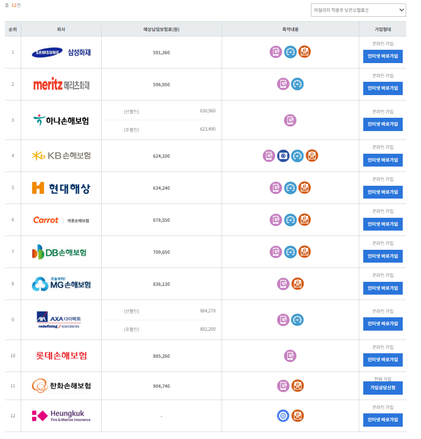 - 이렇게 몇 가지 보험사를 비교해 본 뒤 가장 저렴하거나, 나에게 맞는 보험사를 선정한다.