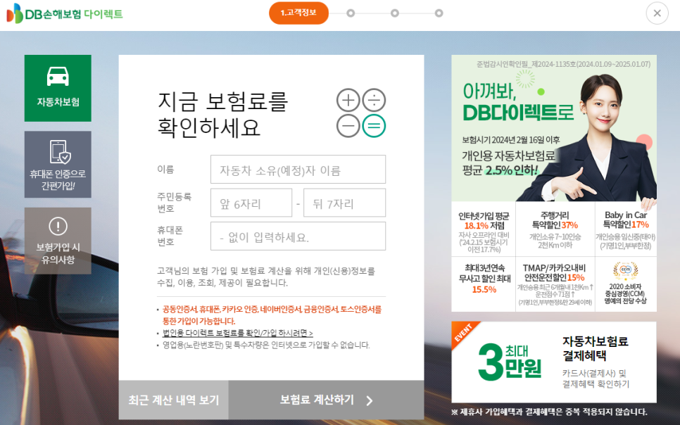 2. 해당 보험사 홈페이지에서 직접 보험료 계산 (3~4군데)