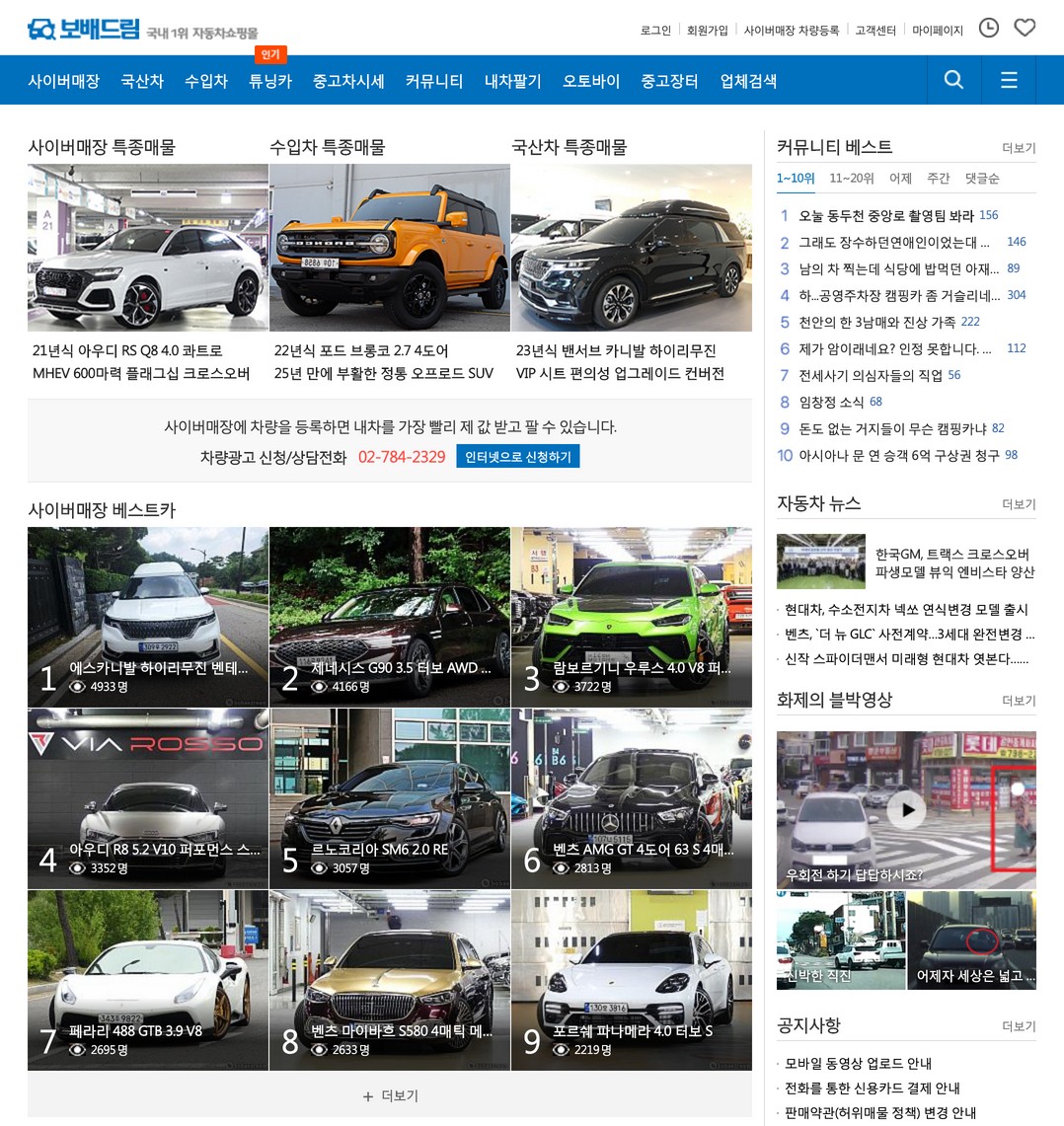 커뮤니티로 잘 알려져 있는 사이트이지만 중고차 거래도 활발하게 하고 있는 곳이다. 차량 정보나 중고차 가격 등 시세를 확인해볼 수 있으며 다양한 개인 거래도 가능한 사이트이다. 보배드림 사이버 매장에 차량을 등록할 수 있으며 해당 차량을 등록하여 바로 판매할 수 있도록 한다. 판매와 더불어 구입하려는 분들에게도 좋은 선택지가 될 수 있는 곳이다.