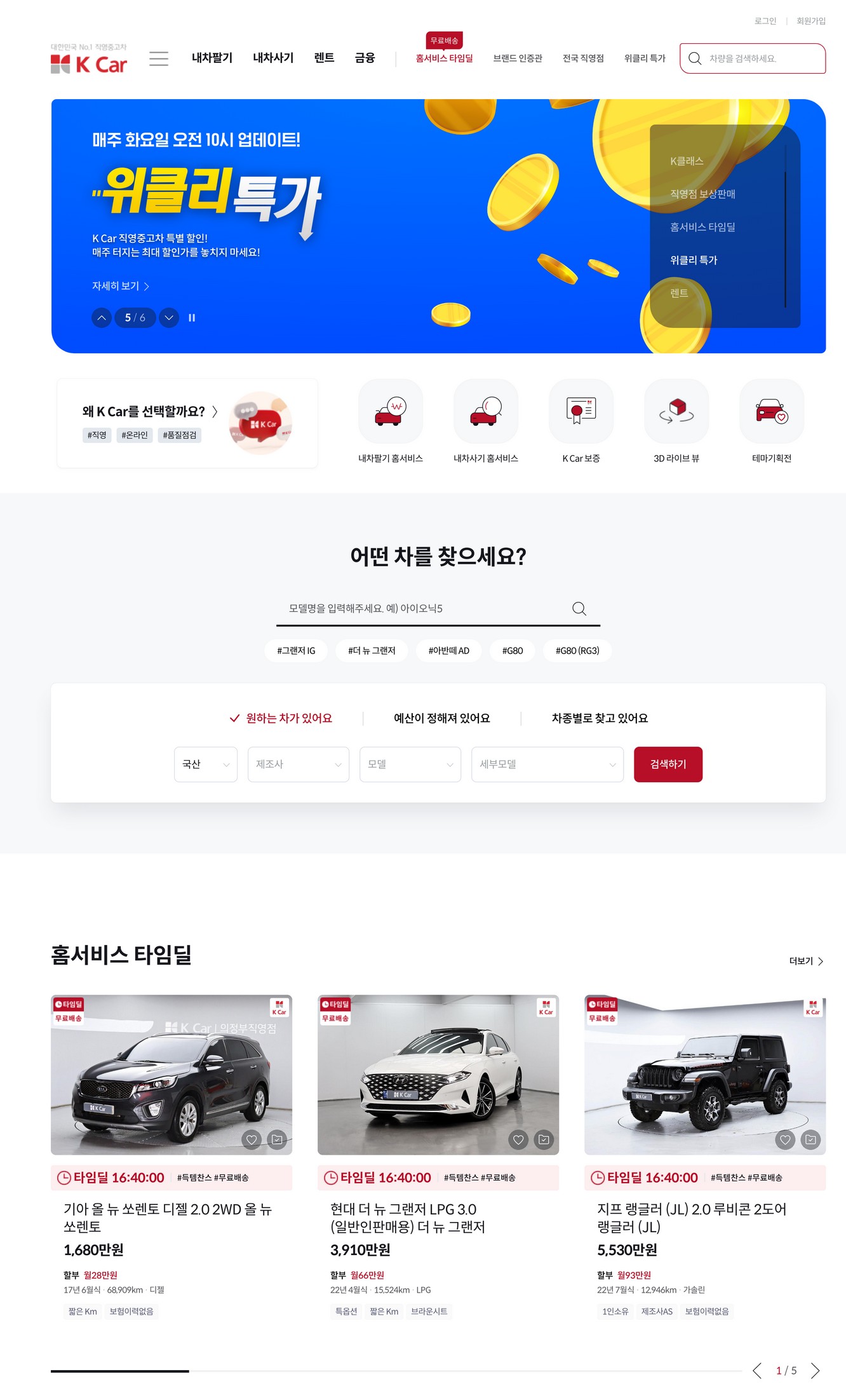 K클래스 중고차, 직영중고차 매매, 중고차 매입, 온라인구매 홈서비스, 3일 책임환불, 최대 2년 보증