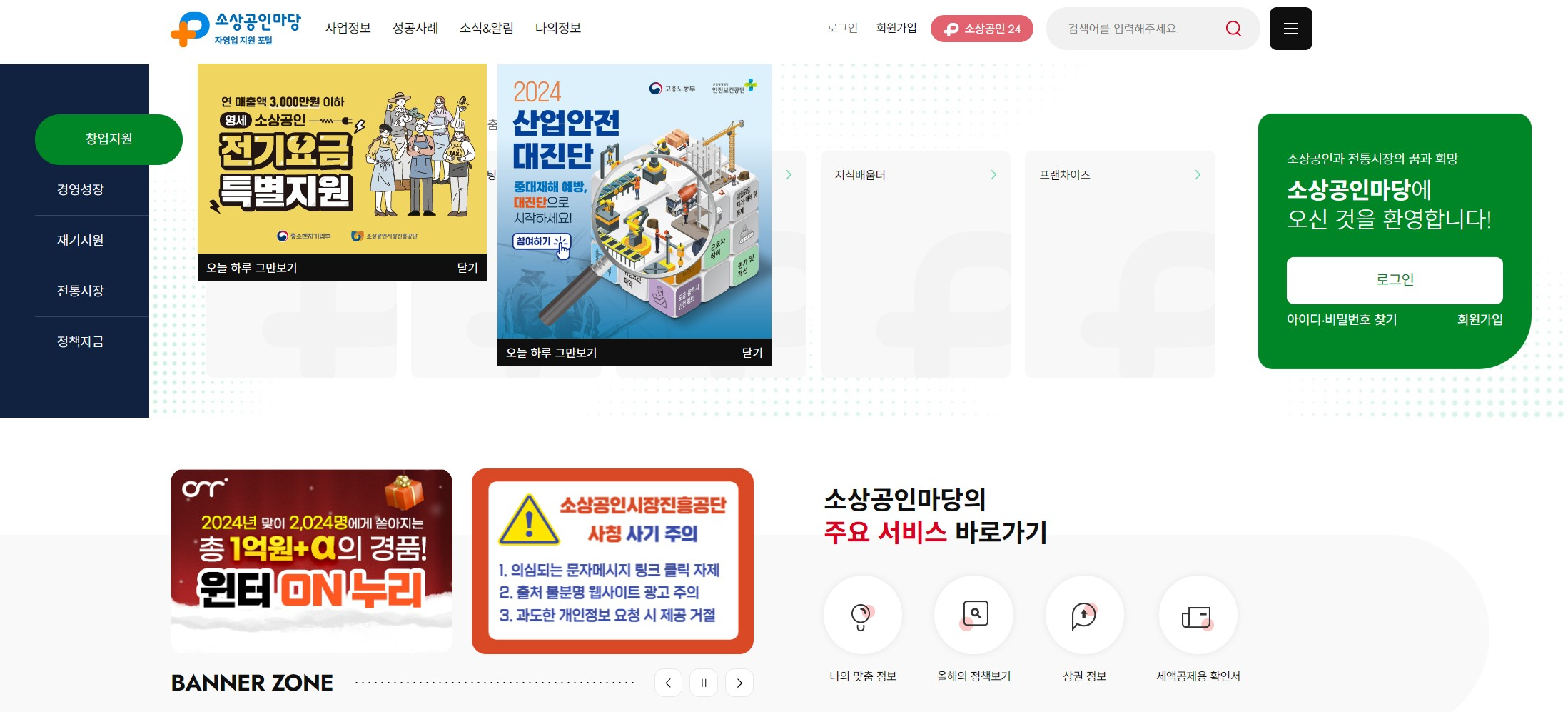 소상공인들을 위한 경영, 마케팅, 금융지원, 교육 프로그램 등 필요한 비즈니스 자원에 대한 정보를 제공한다. 신규 창업부터 폐업, 재창업까지 지원 시책, 상권정보 등 소상공인을 위한 모든 정보를 제공하는 소상공인마당 포털 사이트이다.