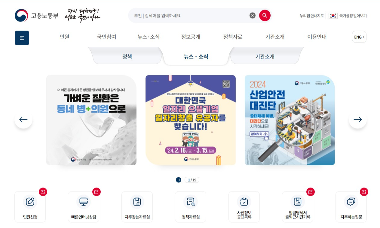 고용노동부는 취업, 훈련, 보호, 복지 등 다양한 분야에서 국민들을 지원하는 정부기관입니다. 구직자들을 위해 노동 관련 정보와 서비스를 제공해 준다.
