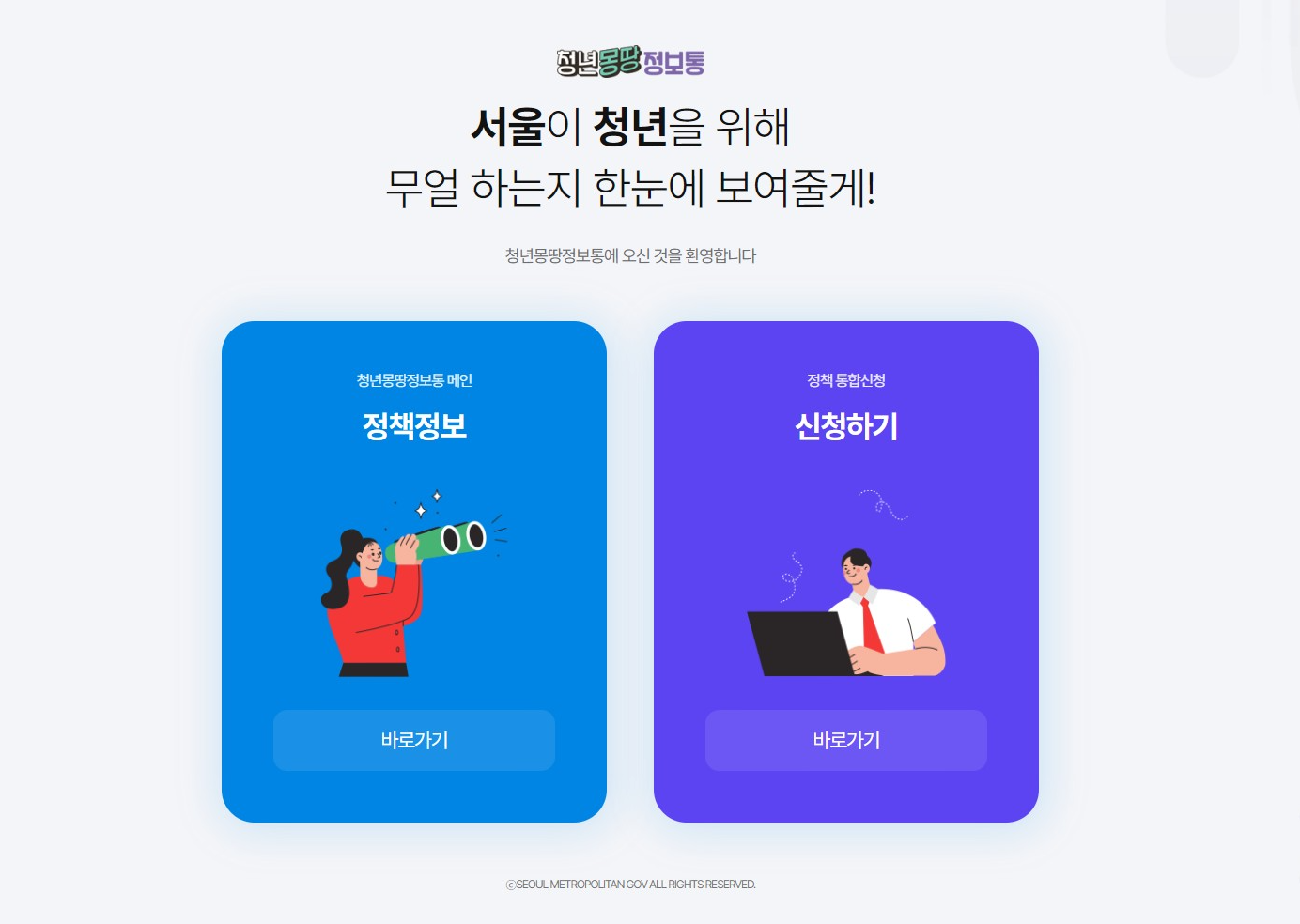 서울시에서 진행하는 각종 행사와 축제, 분야별 새 소식 등 다양한 정보를 한눈에 살펴볼 수 있는 정부공식 사이트이다. 서울시청의 청년정책 페이지에서는 서울시에서 제공하는 다양한 지원 프로그램에 대한 정보를 확인할 수 있습니다.