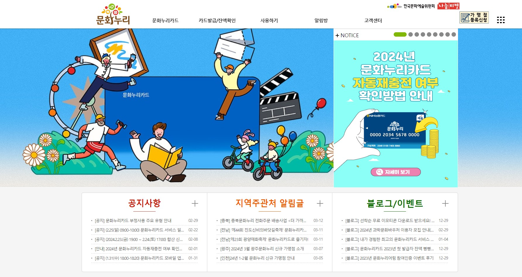 기초생활수급자와 차상위계층을 대상으로 문화예술 및 국내여행, 체육활동 등 최소한의 문화생활을 영위할 수 있도록 국가에서 지원하기 위해 발급하는 카드이다. 문화누리카드 사업 특성상 문화, 관광, 체육분야의 서비스로 사용처가 한정되어 있다.