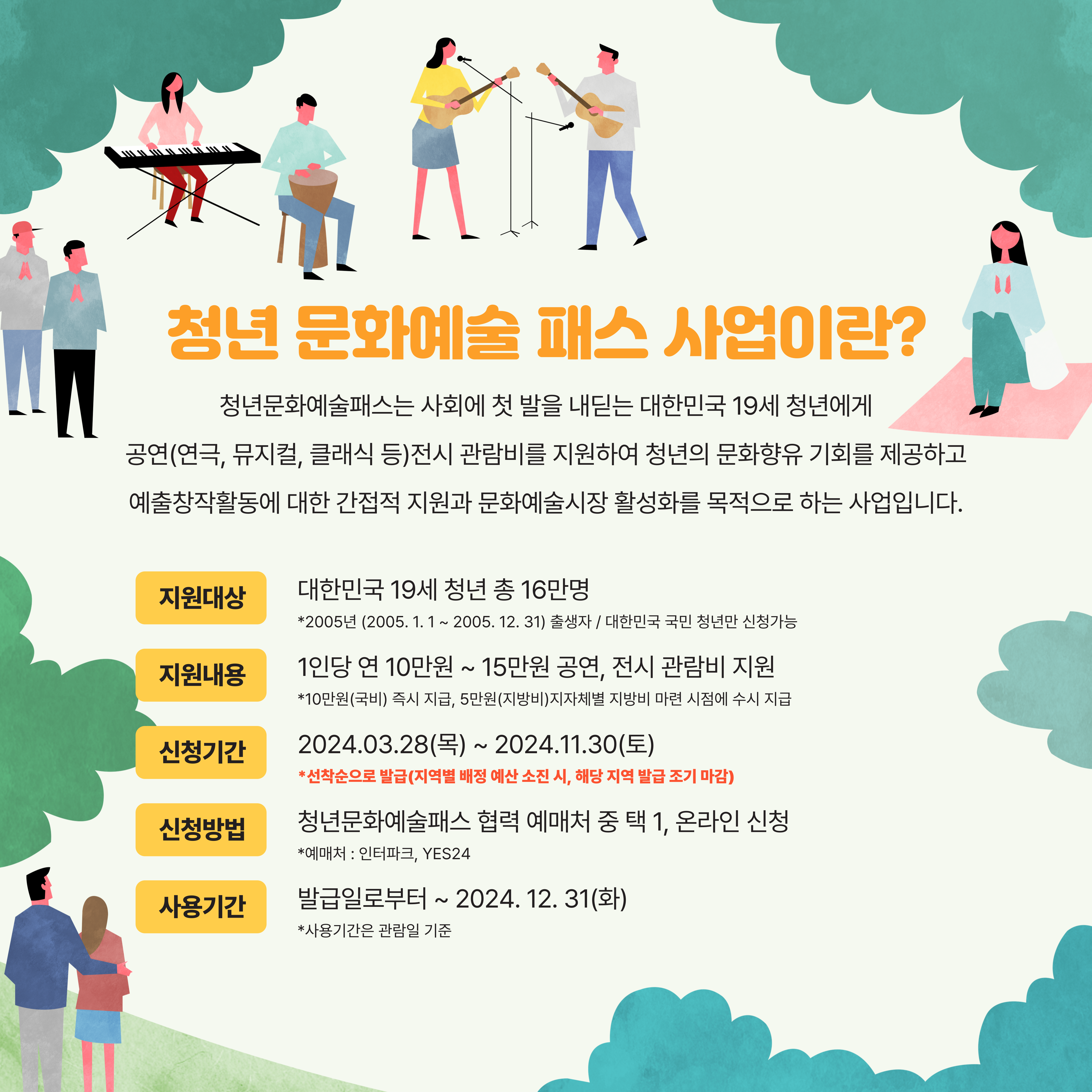 신청방법 : 청년문화예술패스 협력 예매처 중 택 1 (온라인 신청)