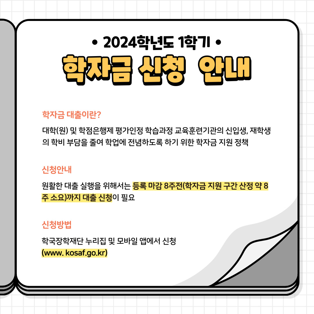 | 등록금 대출 | 2024. 01. 03. (수) ~ 04. 26. (금) 17시 |