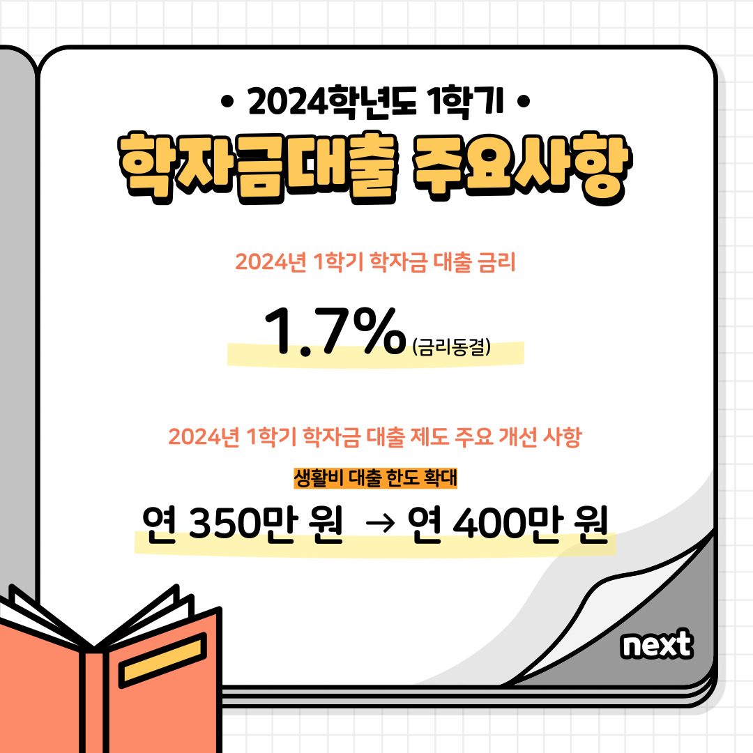 - 2024년 1학기 학자금 대출 금리 : 1.7% (금리 동결)